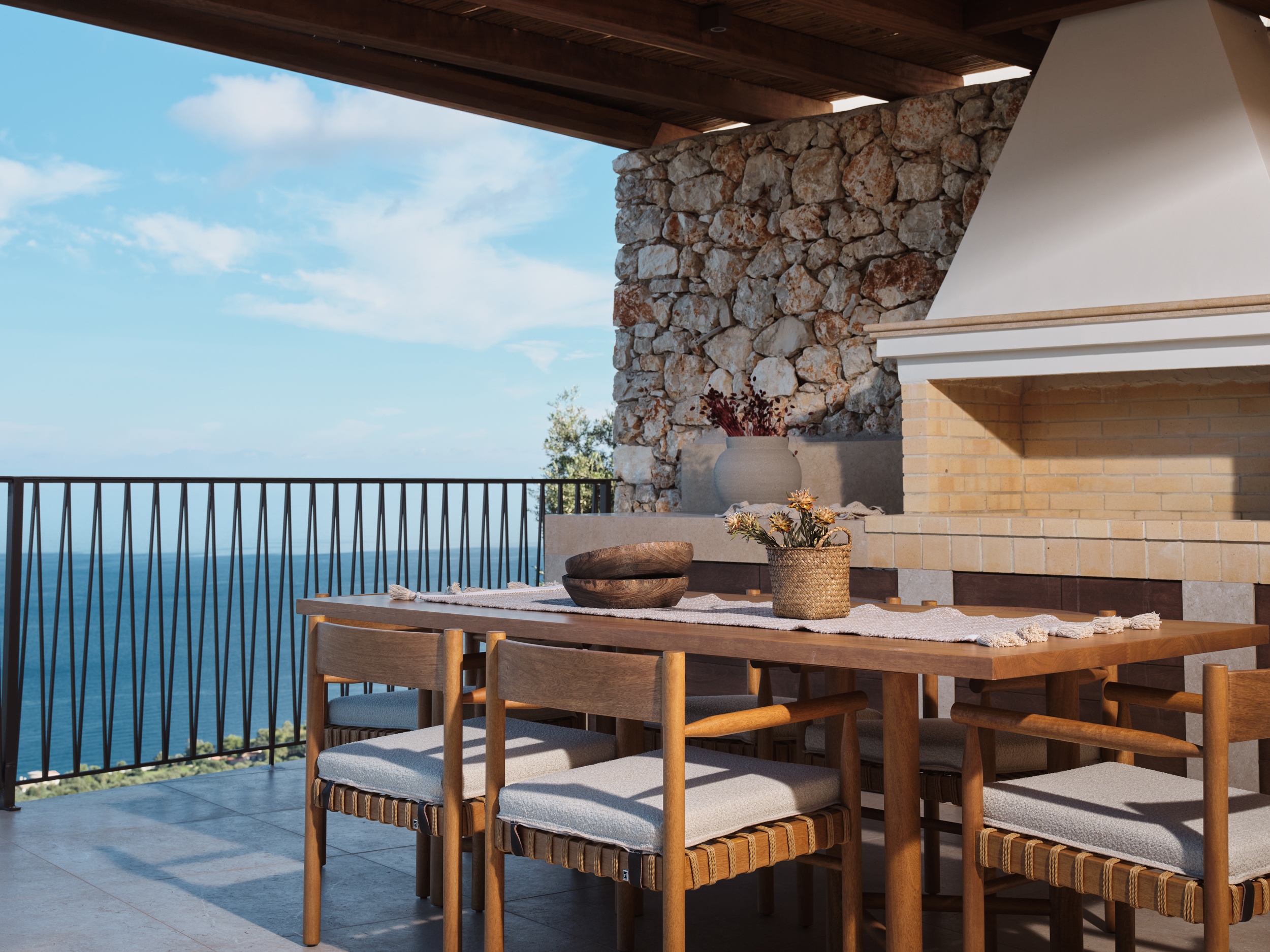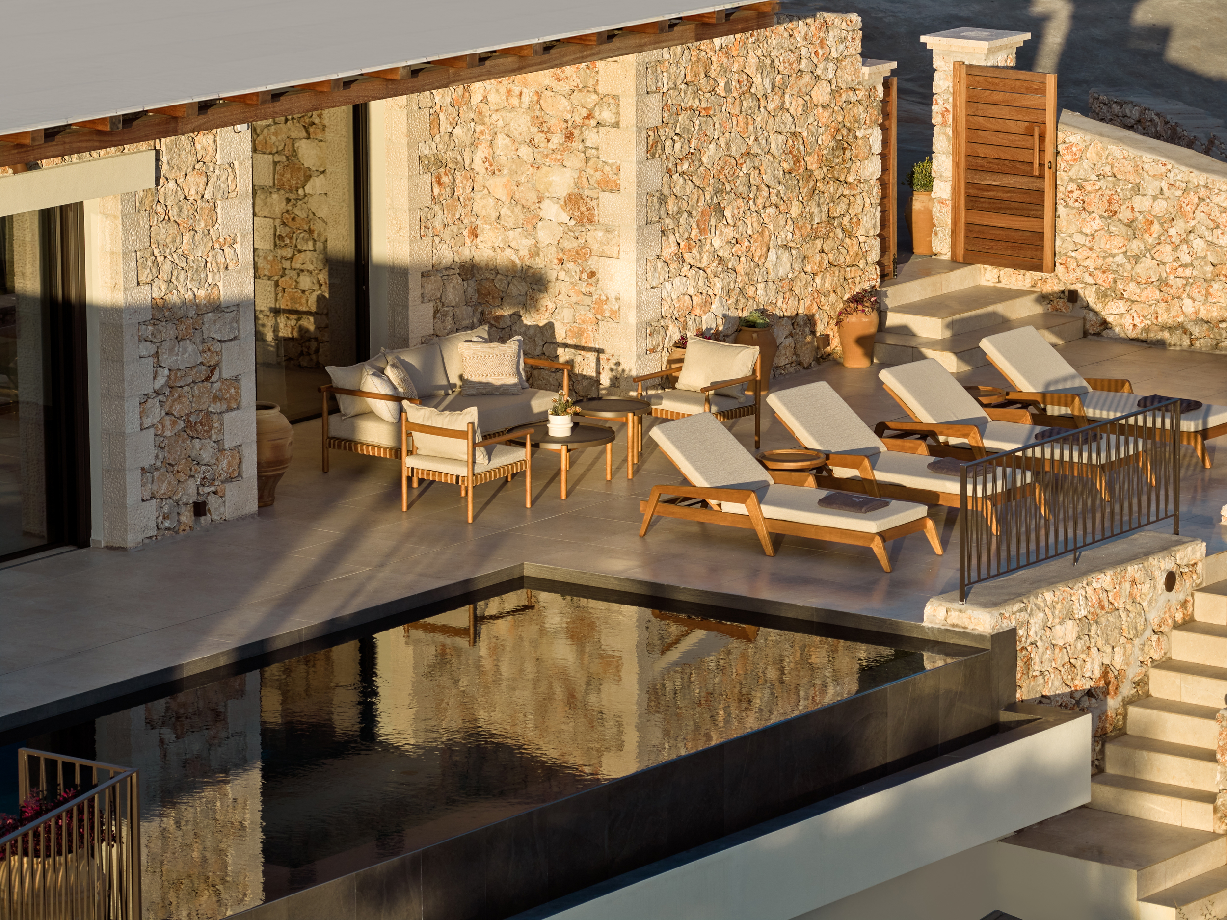 The name Eliterra Villas was created from a thoughtful concept that blends personal meaning with the natural elements that define the villas themselves. At its core lies the meeting of two names—Elena and Areti, symbolizing the connection between two generations, mother and daughter. The second part of the name derives from “terra,” the Latin word for earth, representing the natural landscape, the richness of the land, and the harmony between architecture and environment. The first element, “El,” carries a deeper symbolic meaning connected to light and the sun, historically associated with life, energy, and illumination. Together, these elements form a name that represents the union of light and earth—a concept that mirrors the villas’ unique setting, nestled between rock and vegetation, overlooking the sea and the ever-changing light of sunrise and sunset. Eliterra therefore expresses more than a name; it reflects the meeting of people, nature, and place, embodying the philosophy behind the villas and the experience they offer.